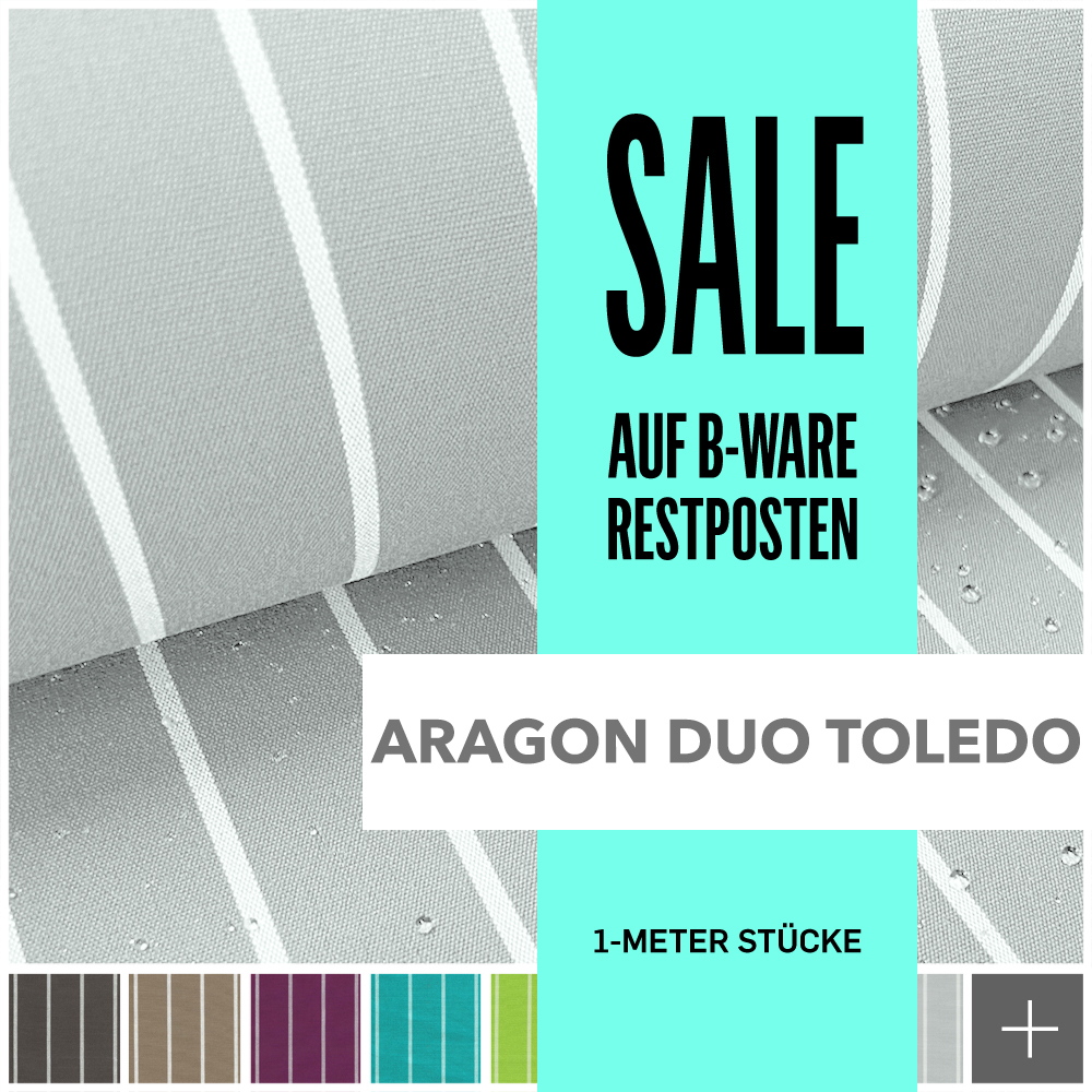 ARAGON DUO TOLEDO | Premium Outdoor Stoff ist die erste Wahl für den Außenbereich. Das DIRT-LIQUID-PROTECT-beschichtete Acrylfaser-Gewebe ist der ideale Stoff für Gartenmöbel, Sonnenliegen, Loungemöbel, Sonnenschirme, Vorhänge, Sofas und Sessel für den Innen- und Außenbereich. Auch Bezüge für Gartenmöbel können aus diesem Stoff gefertigt werden. dralon® ist für Premium-Qualität bekannt. Der einzigartige trocken gesponnene Herstellungsprozess ist in der Faserindustrie einmalig. Dieses Verfahren erzeugt einzigartiges Faservolumen, mehr Grifffestigkeit und höchste Reißfestigkeit sowie Lichtbeständigkeit.