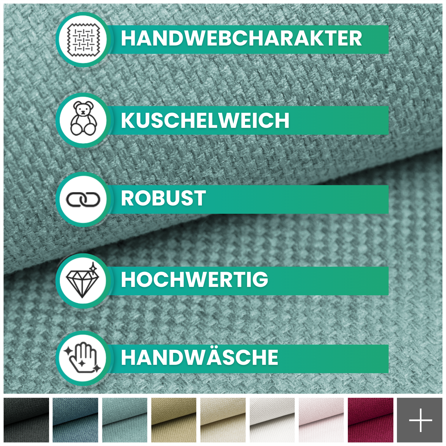 GRANA besticht durch seine feine Webstruktur und eine klassisch-elegante Optik. Der Stoff ist strapazierfähig, fest und zugleich angenehm weich – ideal für zeitlos schöne Polsterlösungen. In vielen attraktiven Farben erhältlich, verleiht GRANA jedem Wohnstil eine edle Note. Hochwertig, langlebig und zum unschlagbaren novely-Preis!